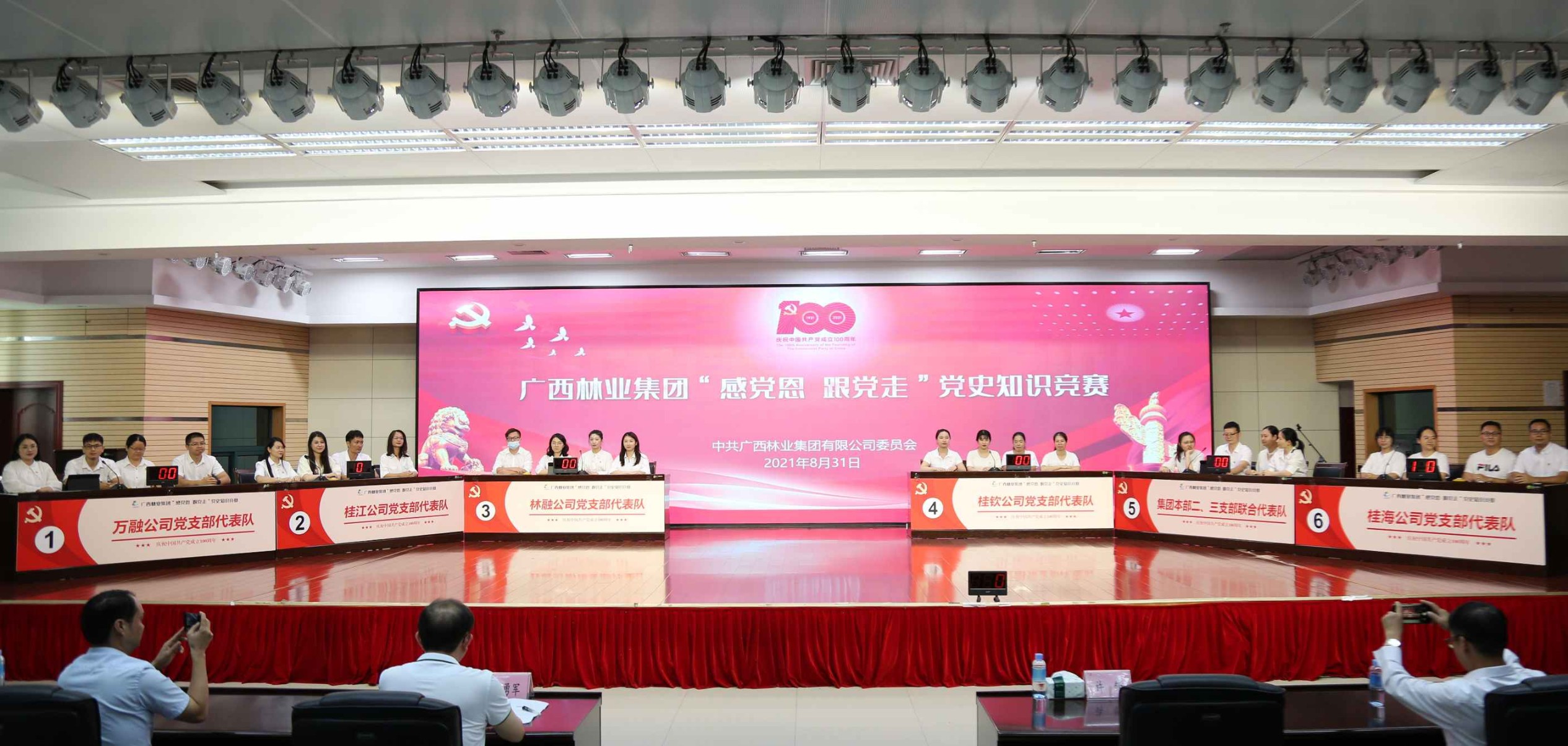 以賽促學,下足學的功夫。8月31日,集團舉辦“感黨恩 跟黨走”黨史知識競賽,采取現(xiàn)場競答形式進行,內(nèi)容緊扣中國共產(chǎn)黨成立100周年主題,涵蓋單選、多選、判斷、聽歌識曲等多種題型,分設個人必答題、小組必答題、搶答題、風險題等4個環(huán)節(jié),從不同視角、不同維度,展示了中國共產(chǎn)黨100周年走過的光輝歷程、重大歷史事件、重要歷史節(jié)點、重要人物事跡等,讓參賽選手和現(xiàn)場觀眾在競賽中深切感受中國共產(chǎn)黨的百年風雨歷程。