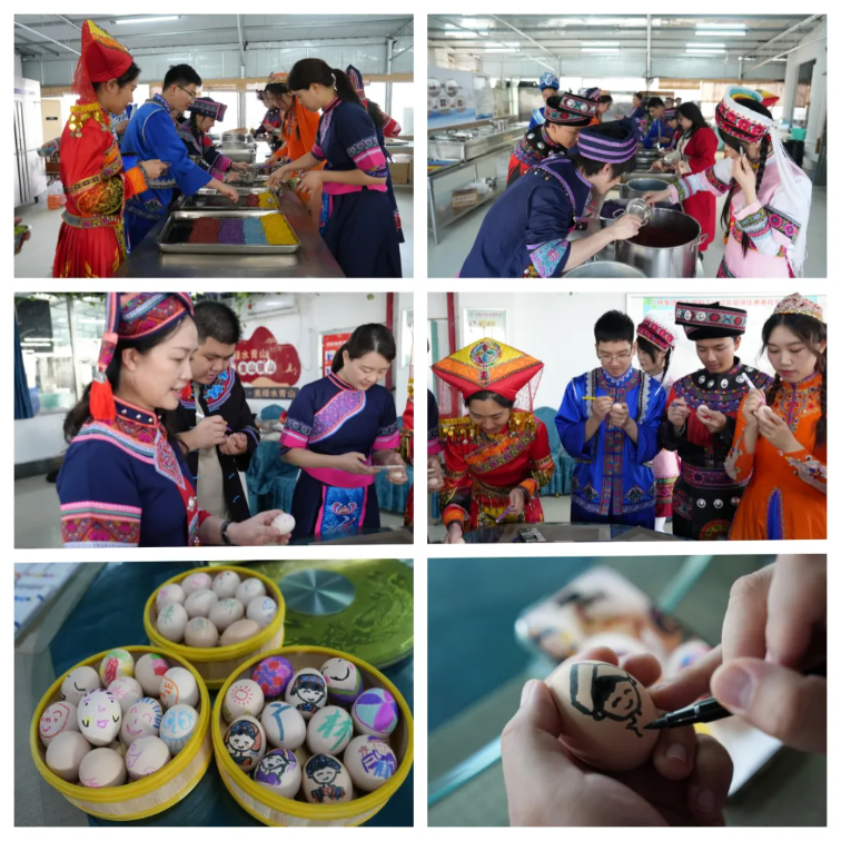 彩蛋繪制區域同樣熱鬧非凡。職工們手持畫筆,在煮熟的雞蛋上精心描繪民族服飾、木棉花等極具民族特色的符號,同時書寫“綠色發展”“民族團結”等美好祝福。彩蛋所蘊含的新生與希望,與廣林人“打通兩山轉化通道 創造綠色生態價值的使命不謀而合,承載著大家對企業美好發展的深切期許。